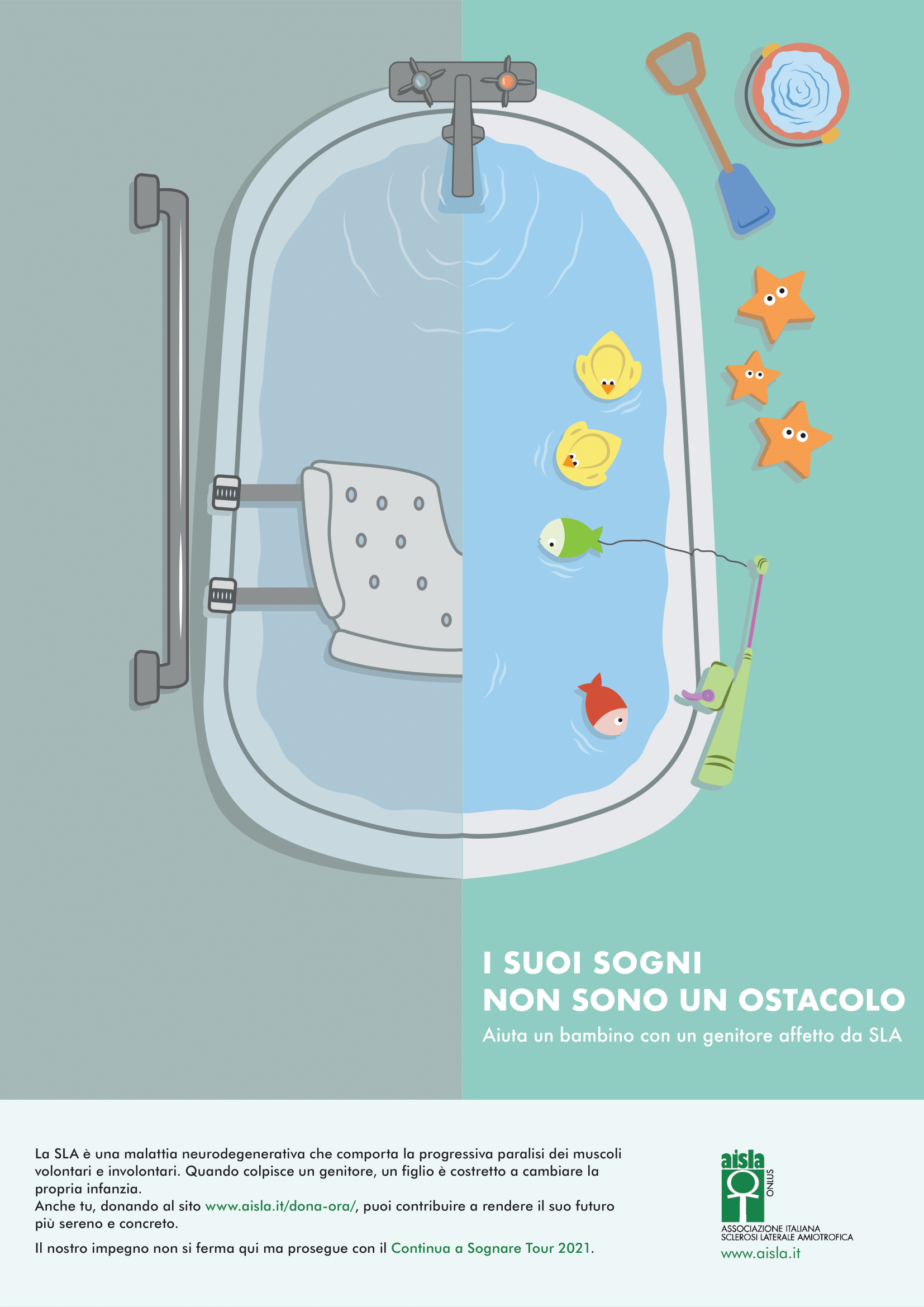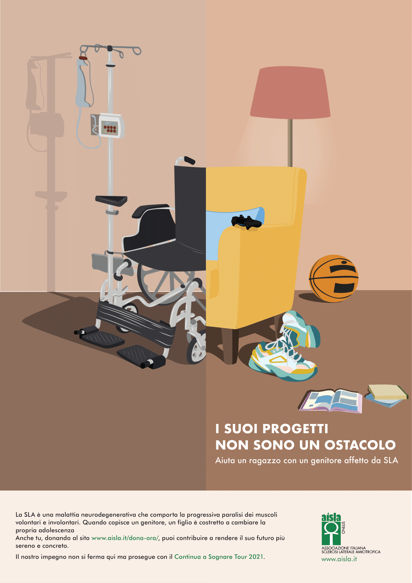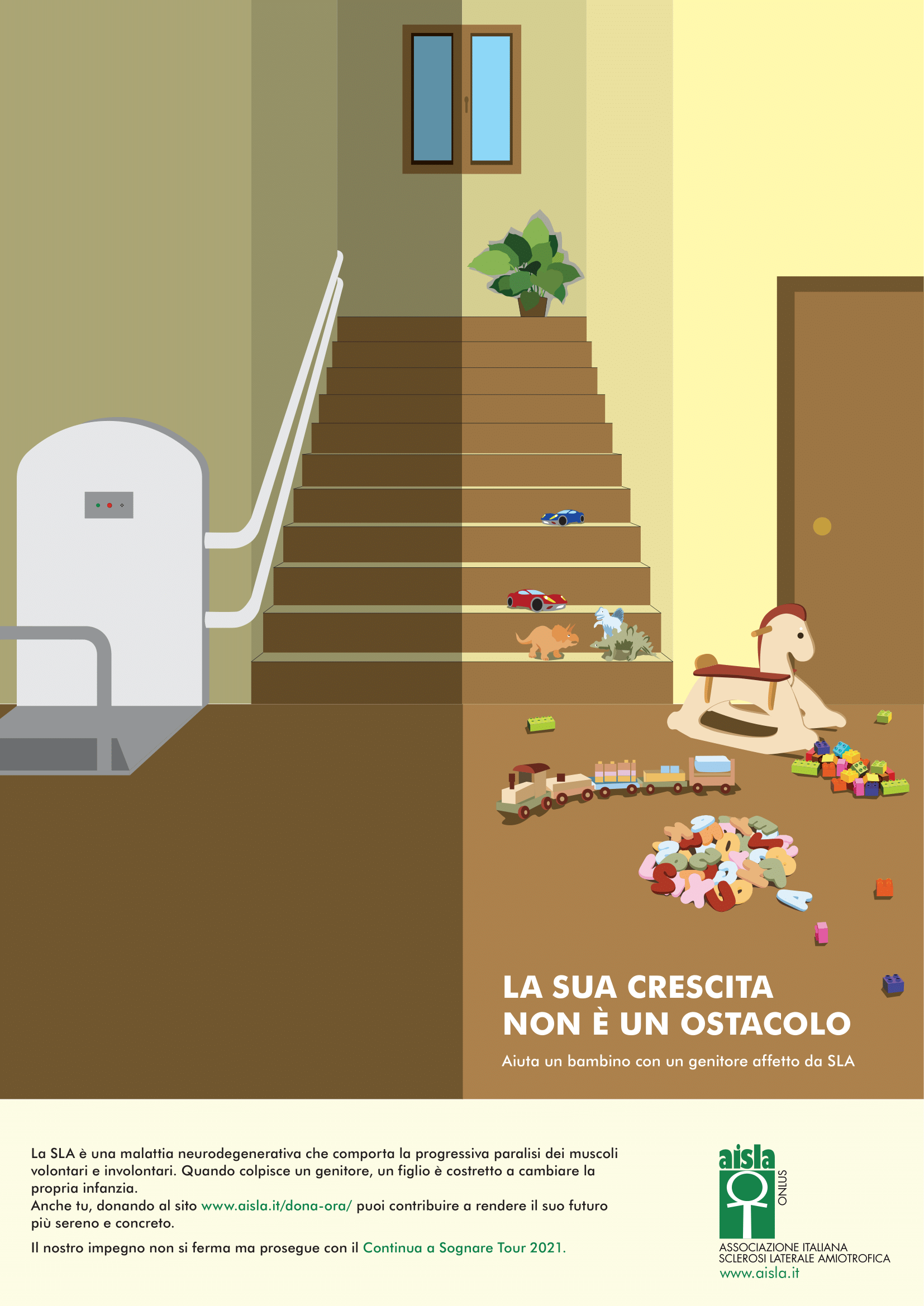 This project was created for a contest by AISLA, an association that supports families with a parent with multiple sclerosis. The brief called for an advertising campaign that showcased how a child with a parent with ALS is forced to adapt to the parent's needs, putting them first, thus depriving themselves at least partially of their own childhood and youth.